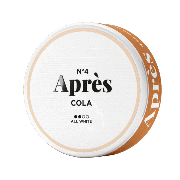 APRÈS Cola är en nikotinpåse med smak av cola. Portionerna är helvita och framtagna i Slim-format för en diskret passform under läppen. Varje påse innehåller 4,4 mg nikotin, vilket motsvarar 8 mg/g, och klassas som en låg nikotinstyrka.