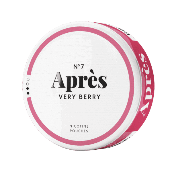 APRÈS Very Berry är en nikotinpåse med smak av bär. De helvita portionerna är utformade i Slim-format för en smal och diskret placering under läppen. Varje påse innehåller 4,4 mg nikotin, vilket motsvarar 8 mg/g, och styrkan klassas som låg.