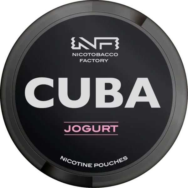 CUBA Black Jogurt är en nikotinpåse med smak av yoghurt. De helvita portionerna har ett smalt format som gör dem diskreta under läppen. Varje prilla innehåller 43 mg nikotin, vilket motsvarar 43 mg/g, och styrkan hör till den mycket höga kategorin.