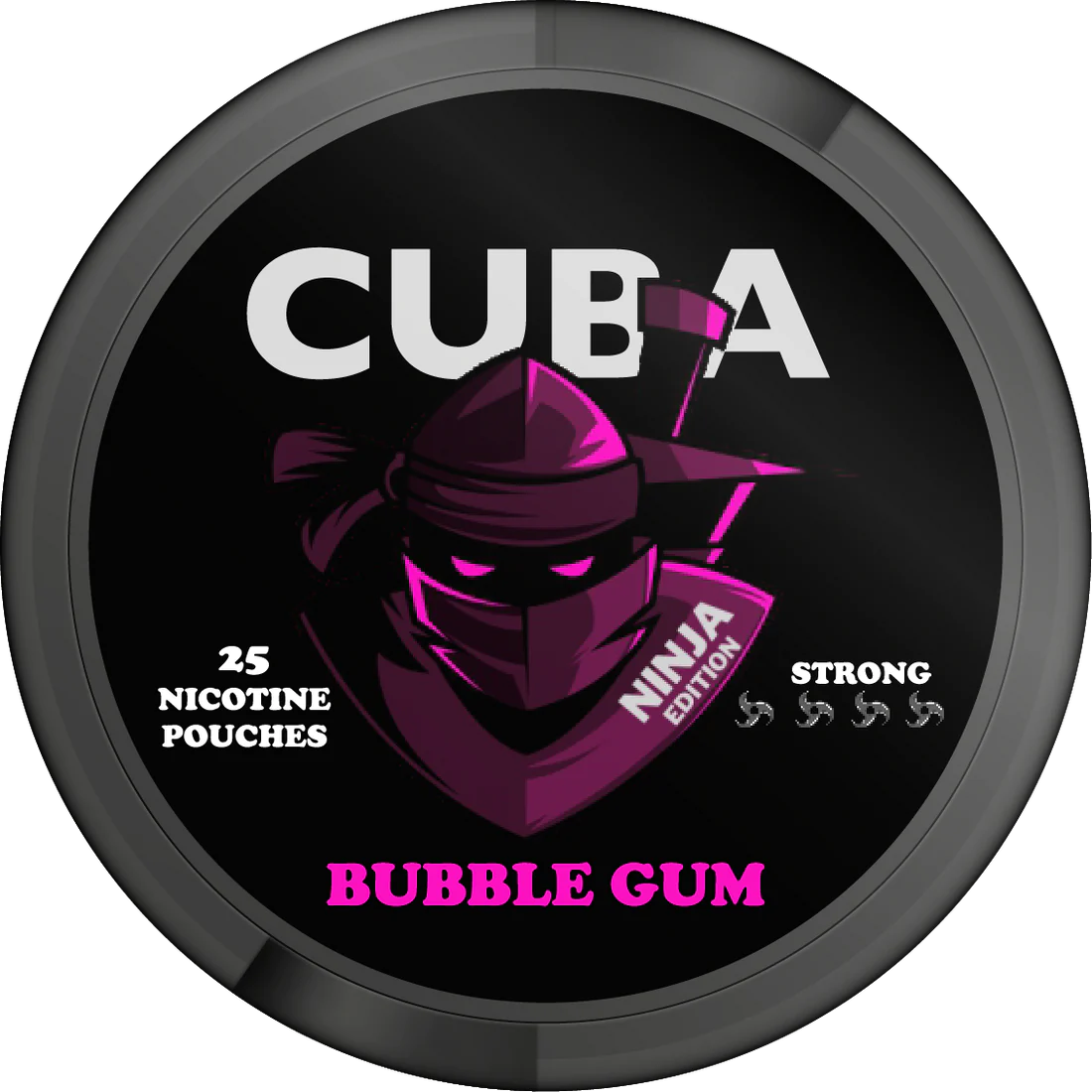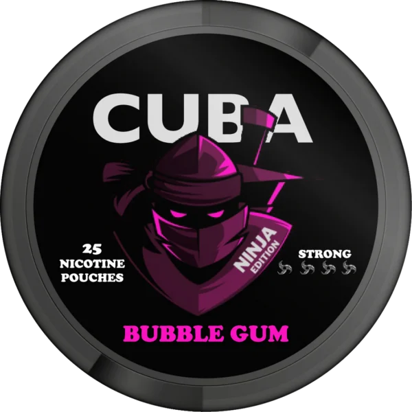 CUBA Ninja Bubble Gum är en nikotinpåse med smak av tuggummi. Portionerna är framställda i slimformat för att ge en diskret placering under läppen. Varje påse innehåller 15 mg nikotin, vilket motsvarar 30 mg/g, och nikotinstyrkan räknas till den högre nivån.
