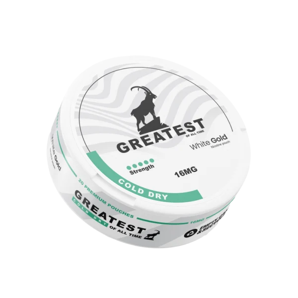 GREATEST Cold Dry 16mg är en nikotinpåse med kall mintkaraktär. Portionerna är designade i slimformat för att placeras diskret under läppen. Varje prilla innehåller 12 mg nikotin, vilket motsvarar 16 mg/g, och nikotinstyrkan klassas som hög.