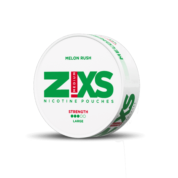 Z!XS Melon Rush Large är en vit nikotinpåse med melonsmak. Portionerna är helvita och framtagna i large-format, vilket innebär att de är något större än standard slim. Varje påse innehåller 12 mg nikotin. Produkten ingår i Z!XS sortiment av vita nikotinpåsar med varierande smaker, styrkor och format.| Attribut | Detaljer |